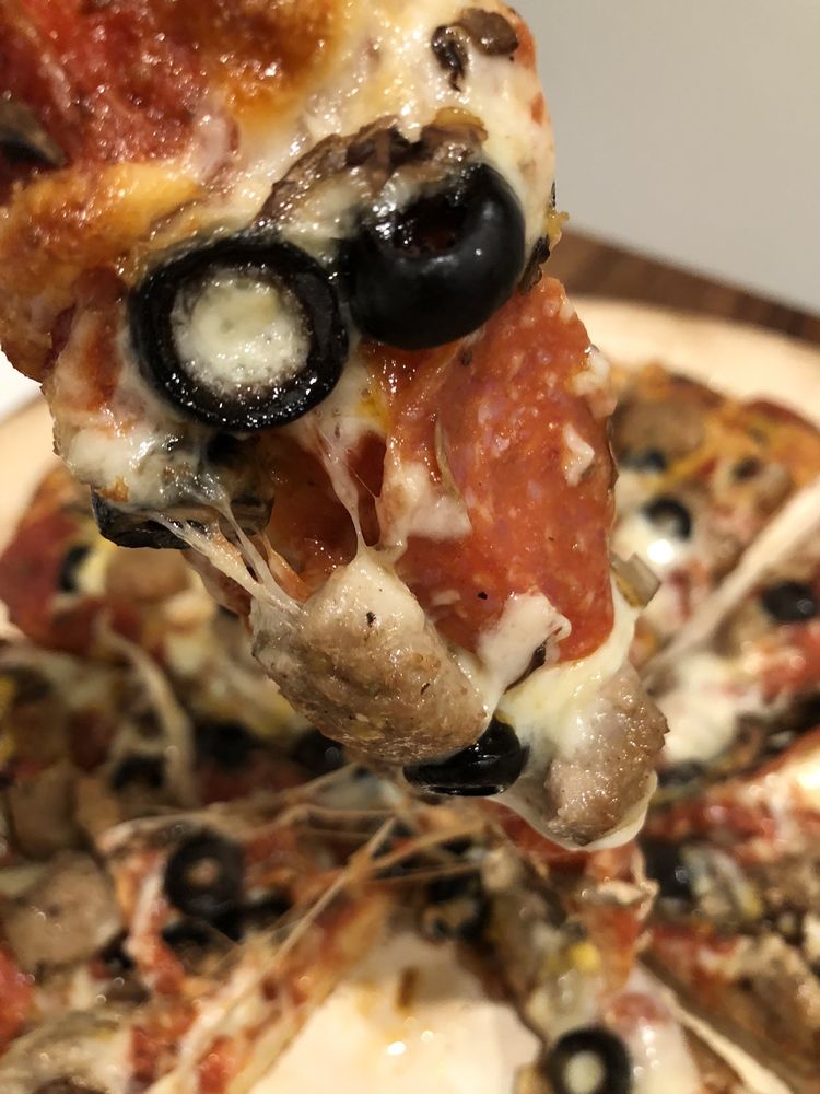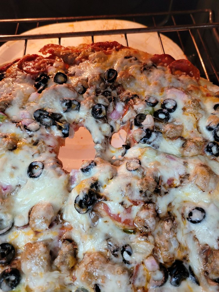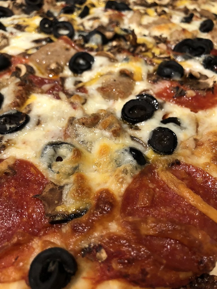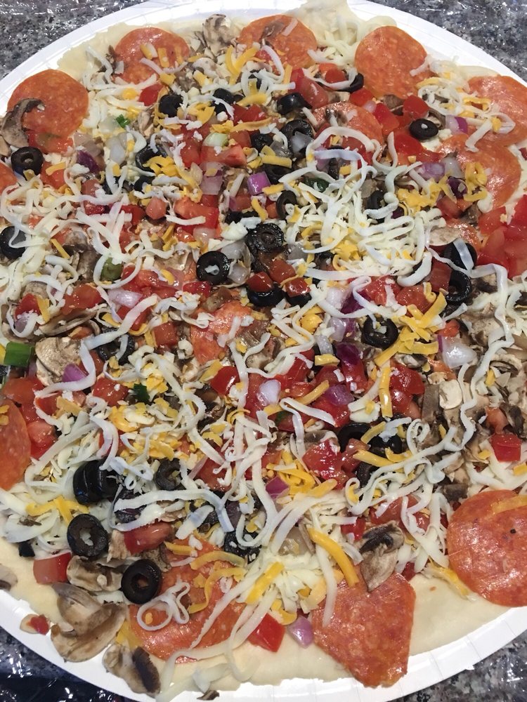Green Peppers, Roma Tomatoes, Black Olives, Whole-Milk Mozzarella, Cheddar Cheese, and Romaine Lettuce